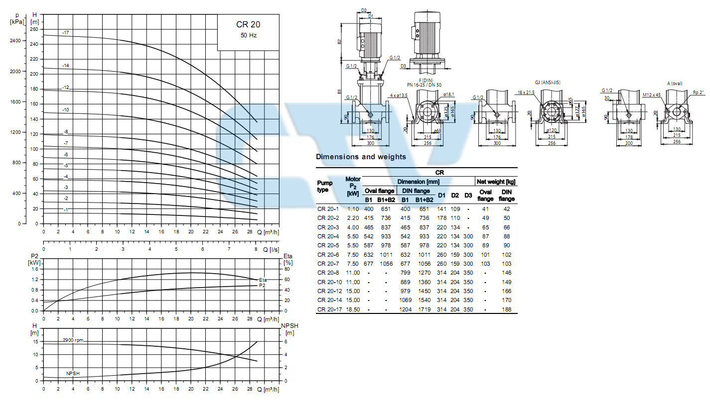 + Dải Model: Grundfos CR/CRN 20 - 1 → Grundfos CR/CRN 20 - 17