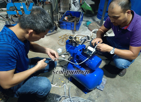 Trên đây là hình ảnh kỹ thuật Cường Thịnh Vương đang lắp ghép bộ máy bơm tăng áp gia đình tại xưởng công ty.