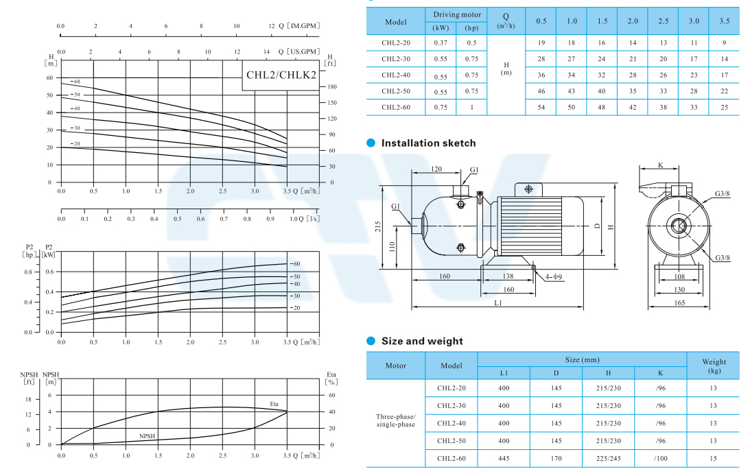 Bơm Trục Ngang Ly Tâm Đa Tầng Cánh CNP CHL 2 - 30