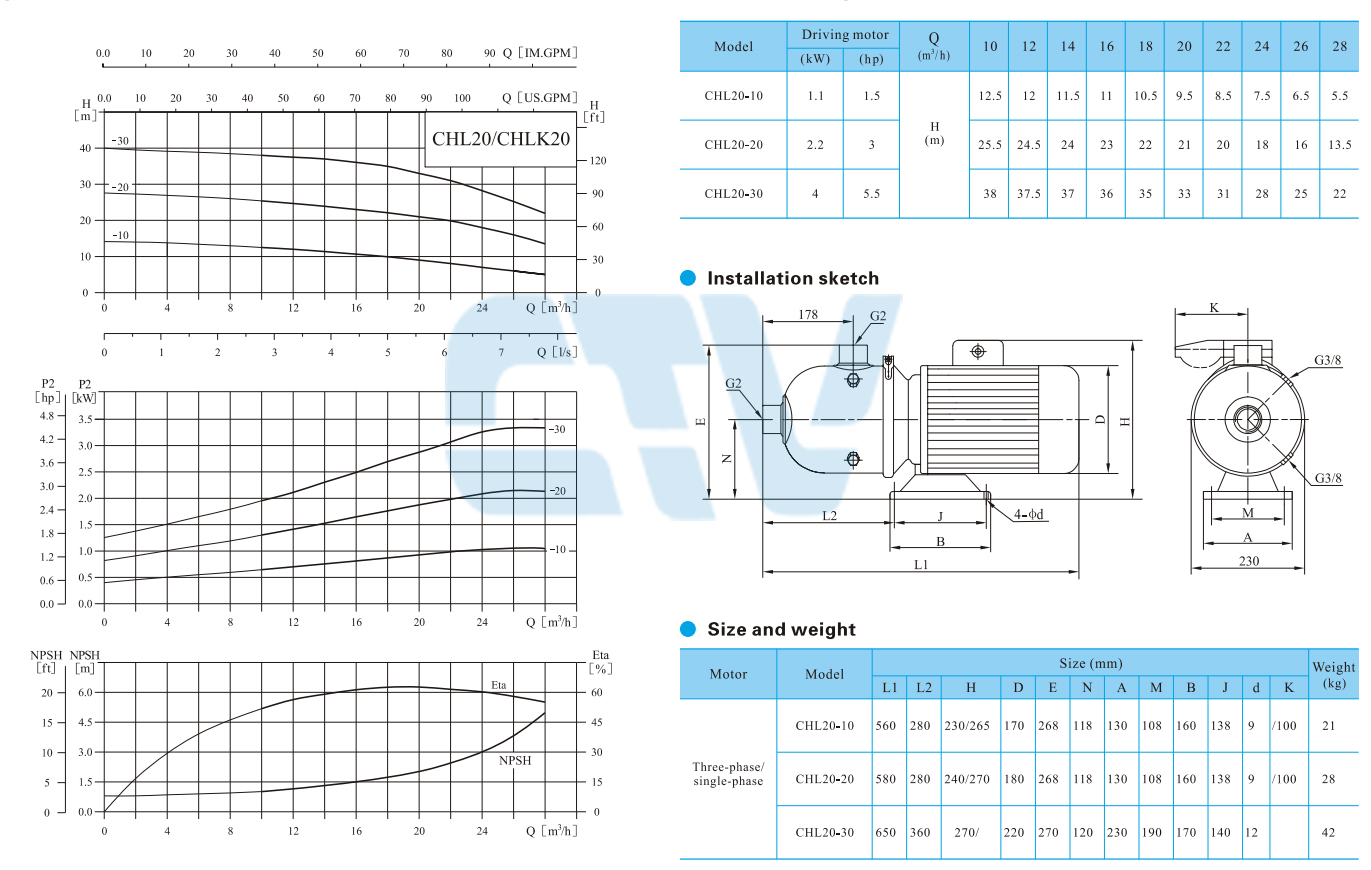 Bơm Trục Ngang Ly Tâm Đa Tầng Cánh CNP CHL 20 - 20