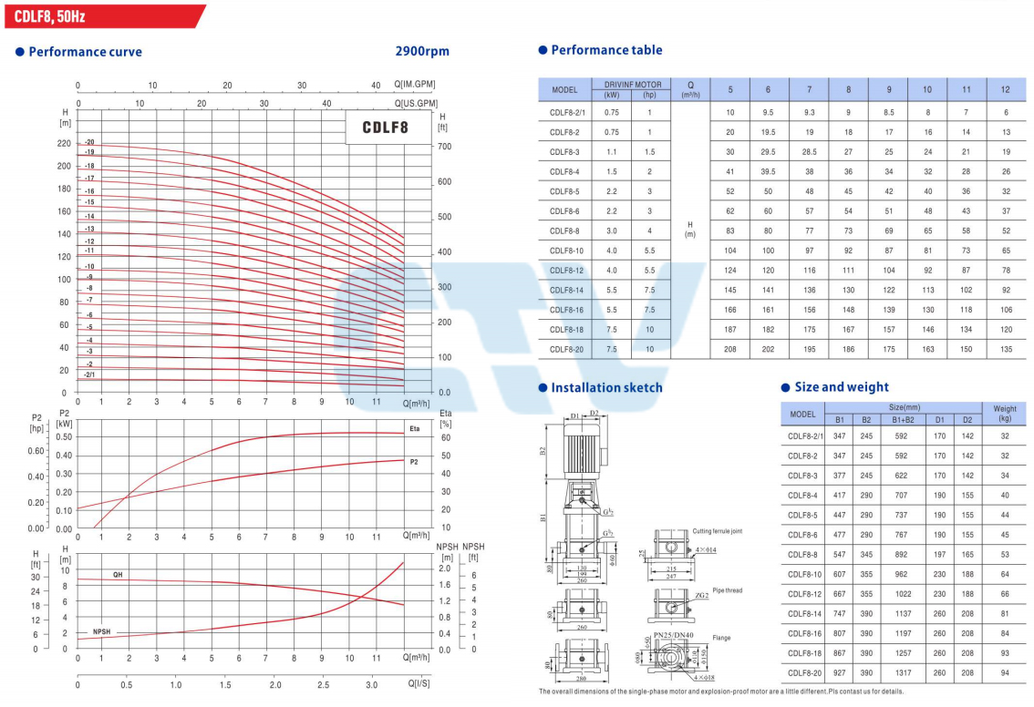 - Phớt bơm: Carbon-Ceramic, Chống ngấm nước bằng vách ngăn dầu ở giữa