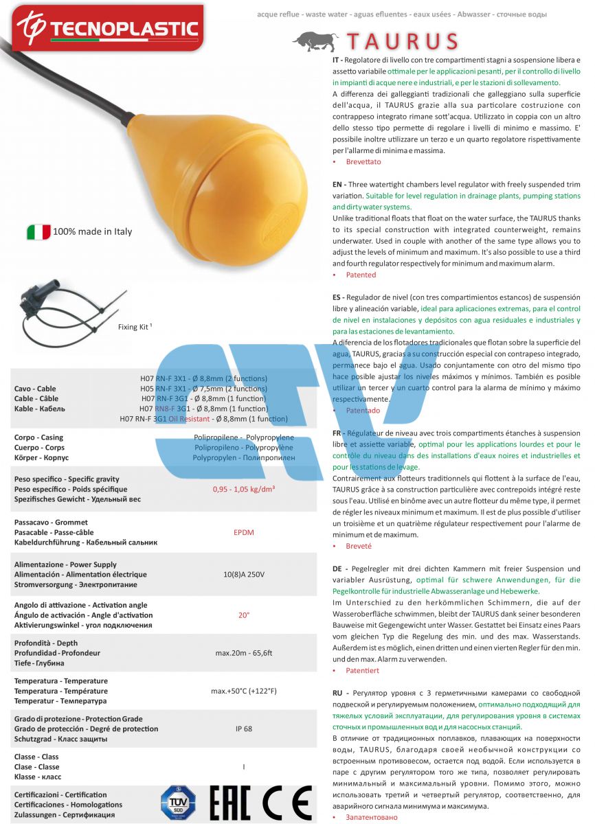 Phao bơm điện, phao bơm chìm Taurus Italy