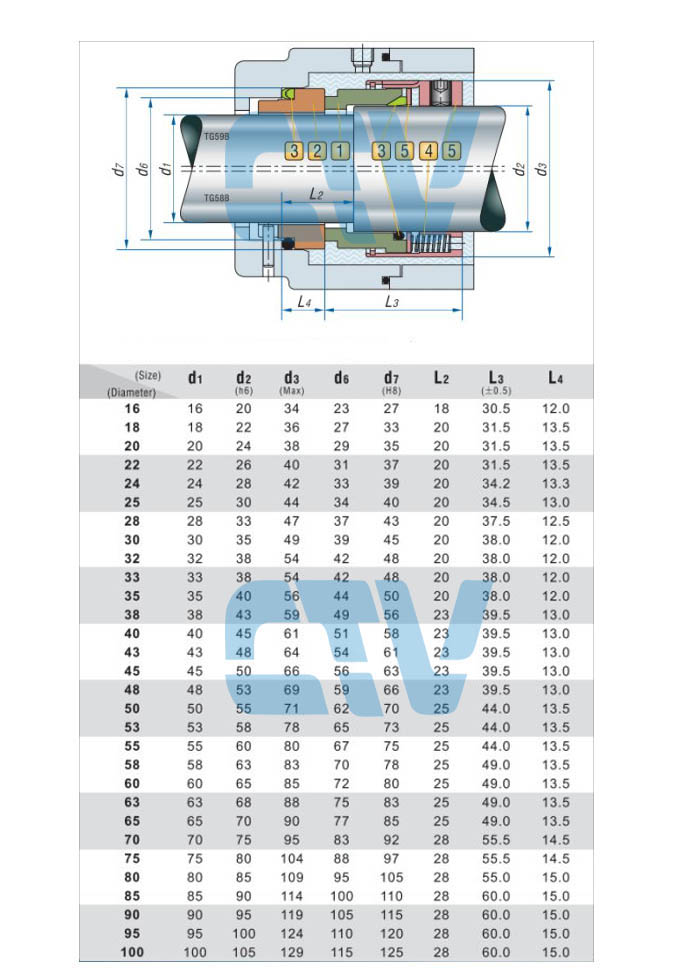 Phớt bơm dệt nhuộm type TU3-25, phớt chịu hóa chất