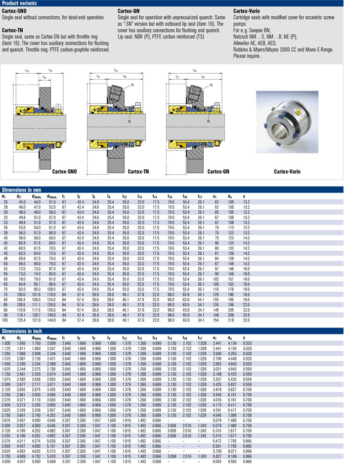 Thông số kĩ thuật của Phớt cơ khí Burgmann CTV Cartex Single seal
