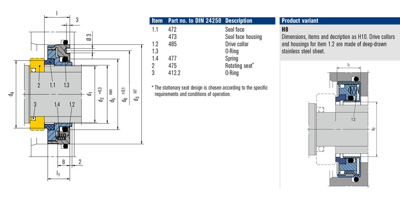 Thông số kĩ thuật của Phớt máy bơm nước Burgmann CTV H10/H8