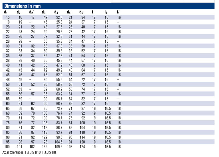 + Shaft diameter: d1 = 15 … 100 mm (0.6" … 3.9")