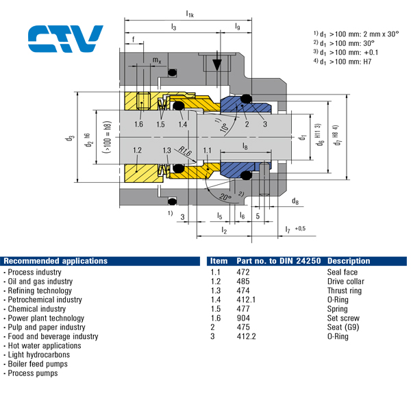 Tính năng của Phớt máy bơm nước Burgmann CTV H7N