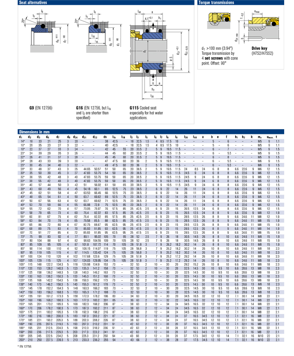 p1 = 25 bar (363 PSI) for d1 = 100 … 200 mm,
