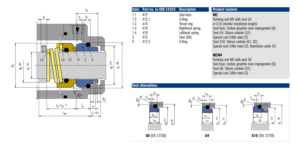 Cấu tạo theo tiêu chuẩn EN12756, được sử dụng cho các máy bơm trong ngành công nghiệp, xây dựng, dịch vụ và các hệ thống xử lý nước thải.