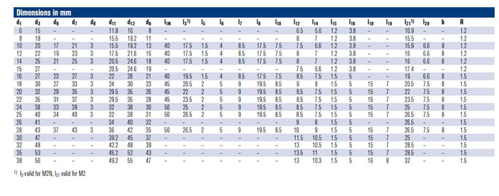 Shaft diameter: d1 = 6 … 38 mm (0.25" … 1.5")