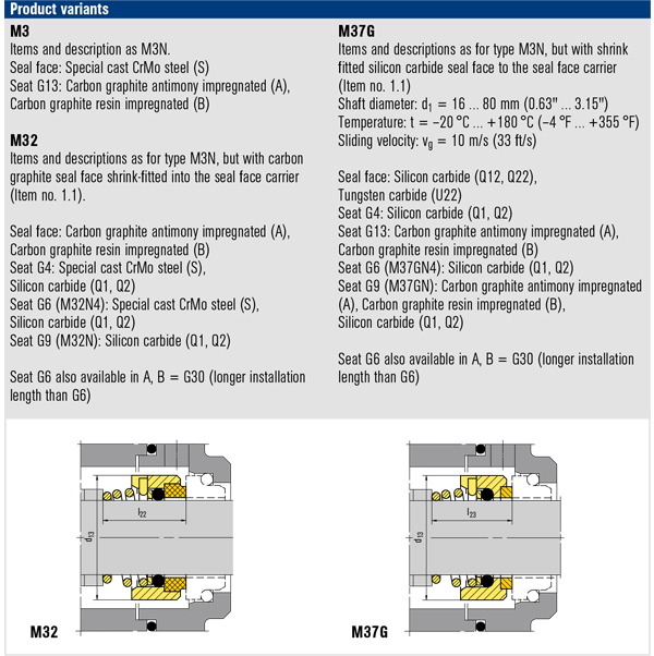 Đặc điểm kĩ thuật của Phớt máy bơm nước Burgmann CTV M3N