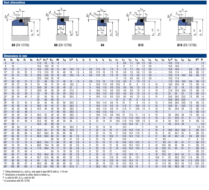 Bảng thông số các chi tiết kĩ thuật của Phớt máy bơm nước Burgmann CTV M3N