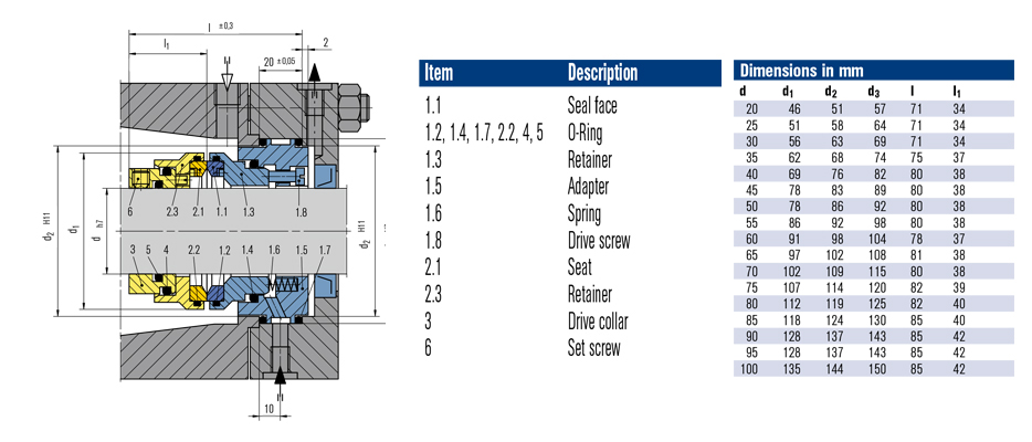 Seal face and seat: Silicon carbide (Q1),Tungsten carbide (U7)