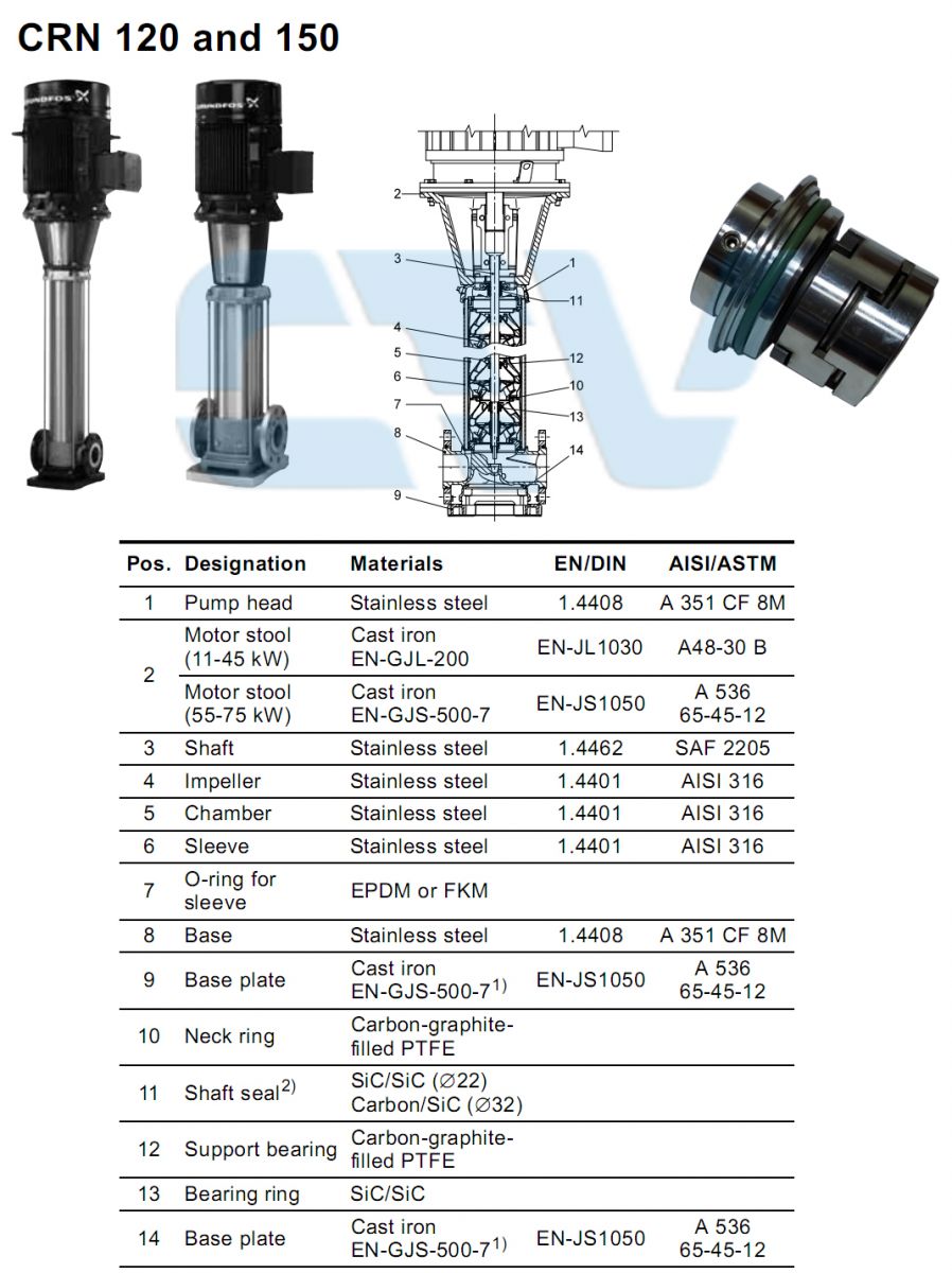 Phớt bơm công nghiệp Grundfos CRN 120, 150