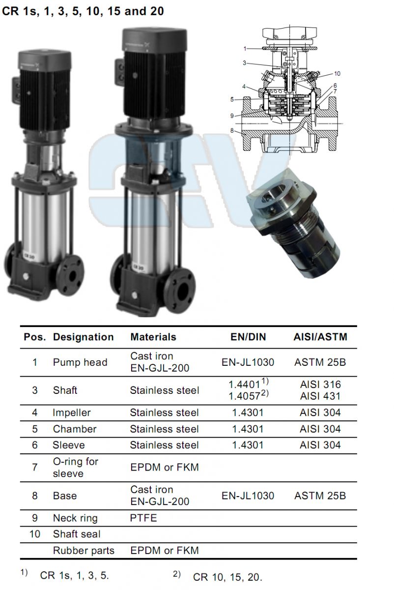 Thông số kỹ thuật phớt trục đứng Grundfos: