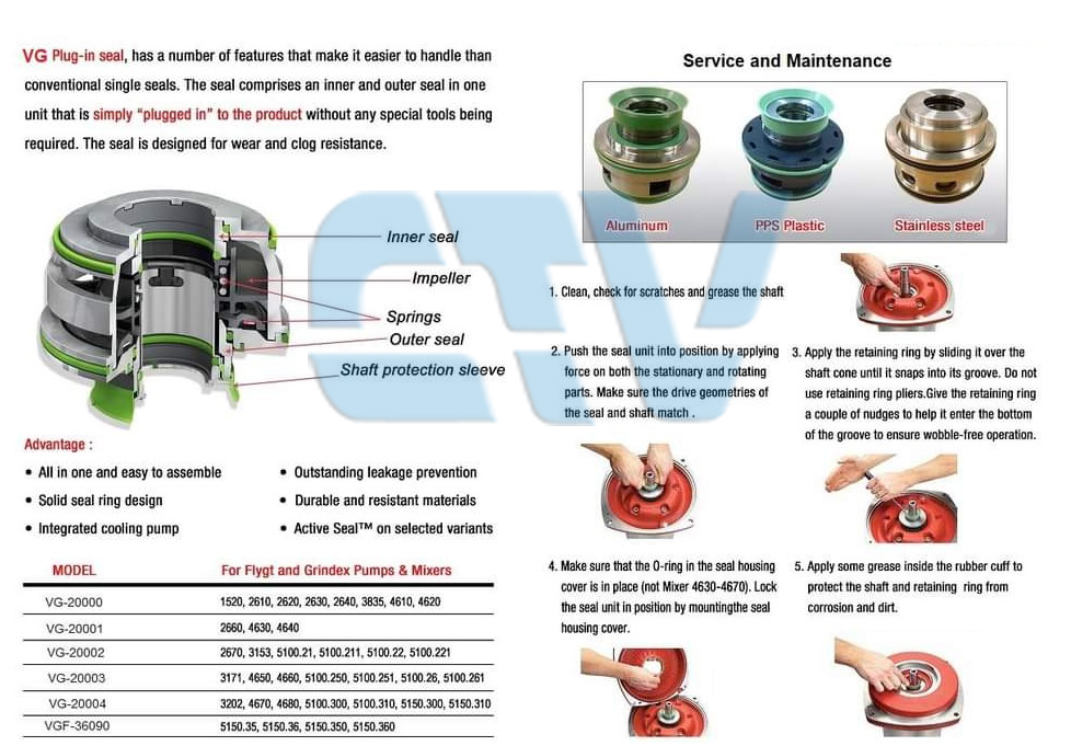 Phớt bơm chìm, phớt máy bơm Flygt giá tốt tại Cường Thịnh Vương